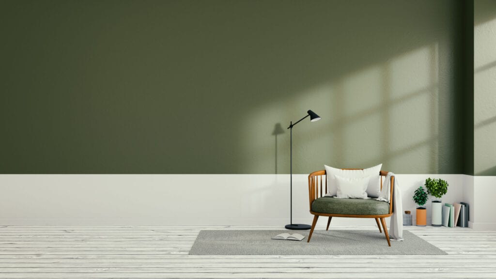 Galleria foto - Soggiorno verde oliva: 7 idee per le pareti Foto 3